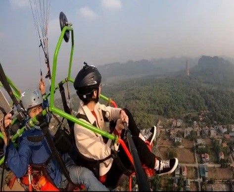 2J/1N avec Phuong Dung Travel « Forfait Santé Naturelle »: Paragliding-Flugtour: 20 minuten (Bai Dinh, Hoa Lu, Trang An)